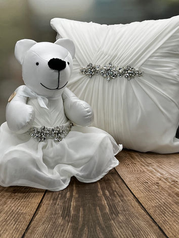 Welcome to my Wedding Dress Keepsake Collection! Here, you will find a special and unique way to preserve the memories of your special day. Each keepsake is handcrafted by Tracy using your beautiful wedding dress, turning it into a one-of-a-kind keepsake that you'll treasure for years to come. I will help you turn your wedding dress into something that you can display and enjoy every day, choose either a Keepsake Bear, Cushion or Blanket. My keepsake creations are made with the utmost care and attention to detail, ensuring that each one is a true reflection of your special day. Having your wedding dress made into a keepsake is a perfect way to commemorate your special day and to keep those memories alive. It's also a beautiful and thoughtful gift idea for newlyweds or even for yourself. These keepsakes are not just a decorative item but a treasure that will be passed down through generations, so that your memories will always be alive. Every dress is different and therefore so is the work involved. Take a look through through some of my recent work and complete the form to get a quote to have your wedding dress made into your chosen design.